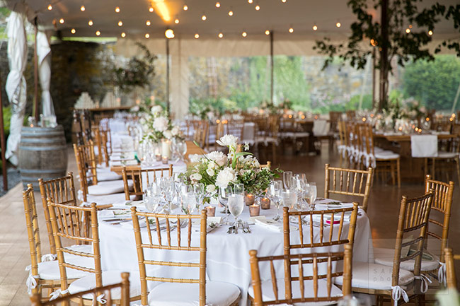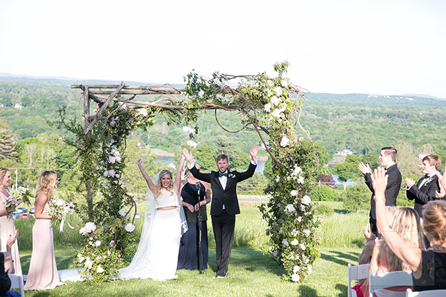 Ashley and Brady were married at Red Maple Vineyard in the Hudson Valley. This venue is the perfect backdrop for a romantic country wedding. This was a 3 day affair with 300 guests starting with a BBQ rehearsal dinner on the Hudson River with a Southern Rock band, to a glorious Sunday brunch and mass to say farewell to all of their guests. Each guest was greeted by a custom designed welcome gift box filled with local goodies and treats from Ohio where the grooms family lived. To allow our guests to relax and enjoy each event we hired private tour buses to bring guests to and from each day’s events. We thoughtfully organized and designed each day for maximum fun and country elegance. The wedding was beyond beautiful with blush and white flowers created by Putnam & Putnam. The guests were treated to some great music by the Hot Damm Band and a firework show to make everyone smile. The weekend was truly one to be remembered.