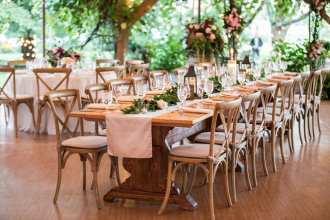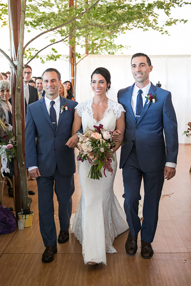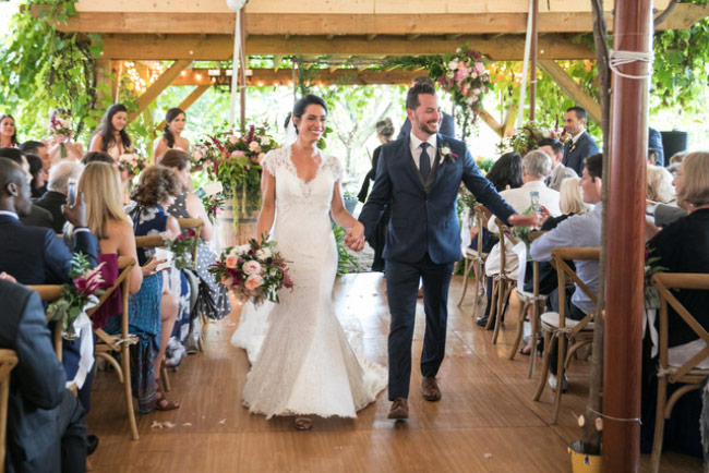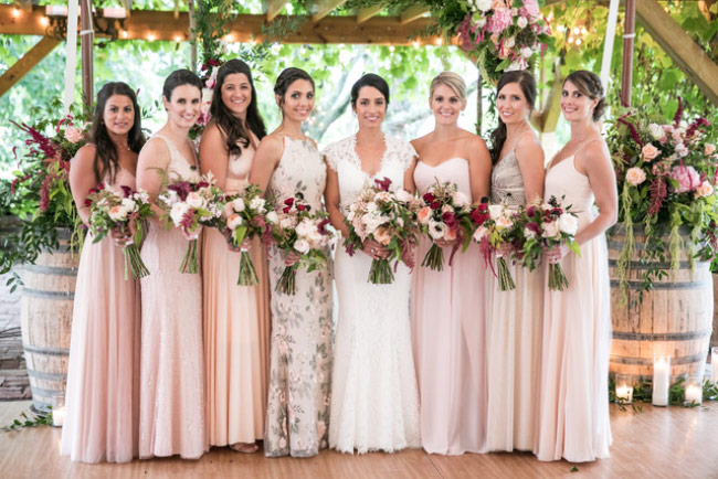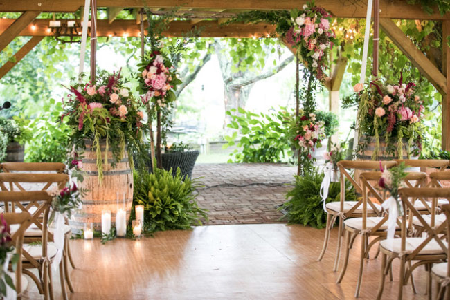 This sweet NYC couple wanted to bring all their friends to the country for a weekend to be remembered. They were married at Red Maple Vineyard, the perfect Hudson Valley venue for the Plan B rain plan. On the morning of the wedding it was raining. We knew we had to redesign the day and go to plan B. We moved everything inside and created the most beautiful ceremony site under the tent with trees and flowers all around. We added wine barrels with flowers cascading over the sides, candles and greenery everywhere to create an atmosphere of the beautiful outdoors inside. It was even more beautiful then plan A!